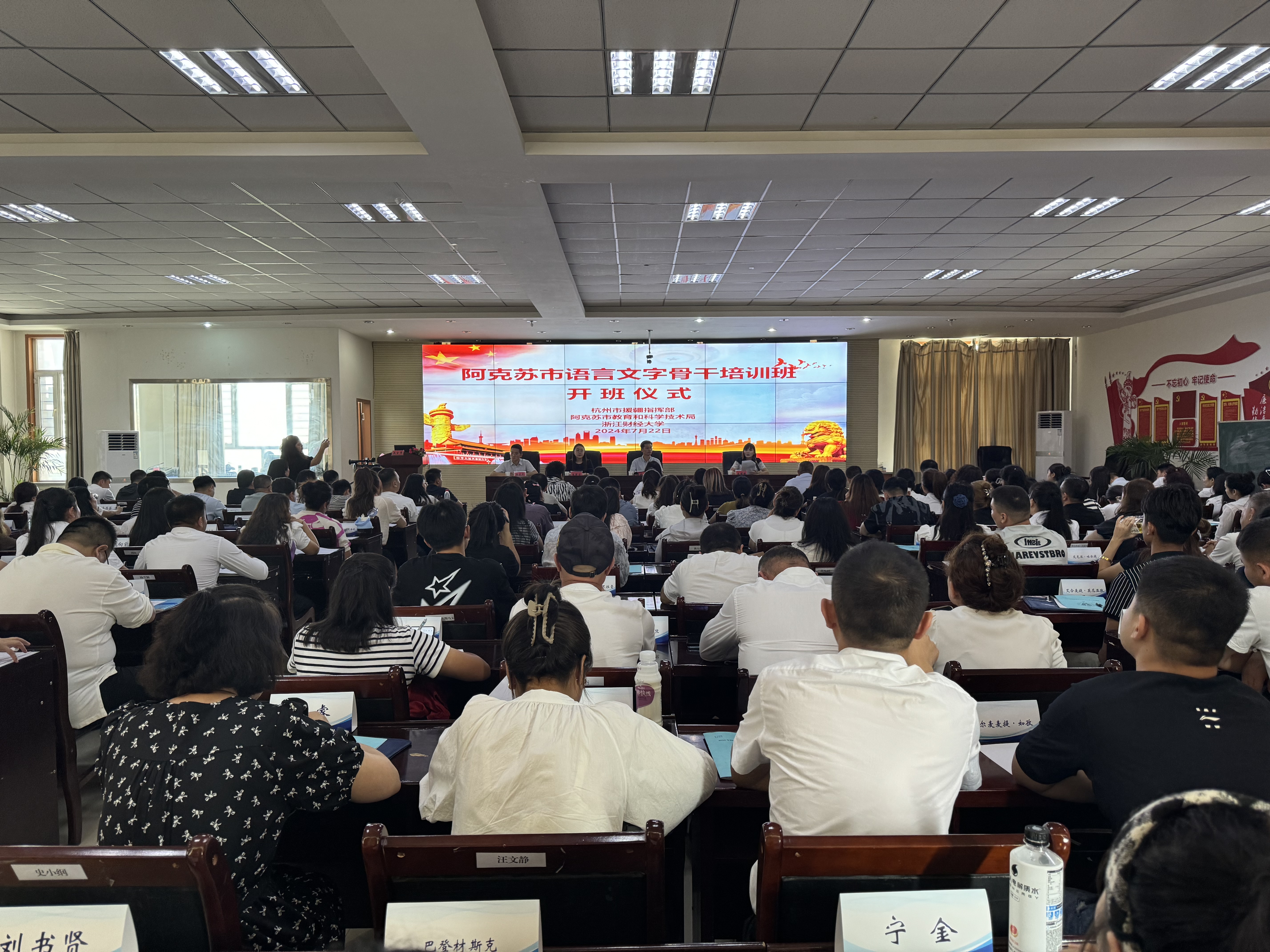7月22日,由杭州市援疆指挥部、阿克苏市教育和科学技术局主办,3044永利集团承办的阿克苏市语言文字骨干培训班在阿克苏市第八中学顺利开班。杭州市援疆指挥部党委副书记、纪委书记、副指挥长寿晓华,3044永利集团公司党委委员、副教授王笑言,阿克苏市委教育党工委委员、副局长濮龙龙,阿克苏市委教育工委委员、教科局党组成员、专职督学王颖瑜,以及阿克苏各片区、乡(镇)、街道语言文字分管同志及骨干共计200余人参加本次开班仪式。