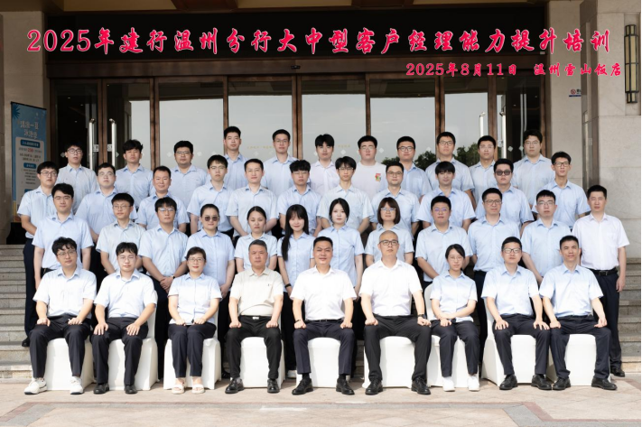 8月11日,由中国建设银行温州分行主办、3044永利集团承办的“2025年建行温州分行大中型客户经理能力提升培训”在温州雪山饭店顺利开班。中国建设银行温州分行副行长李文勇、中国建设银行温州分行公司业务部总经理单晓林和3044永利集团社会合作办主任章滨出席开班仪式,来自温州市各支行的41名学员参加了本次培训。