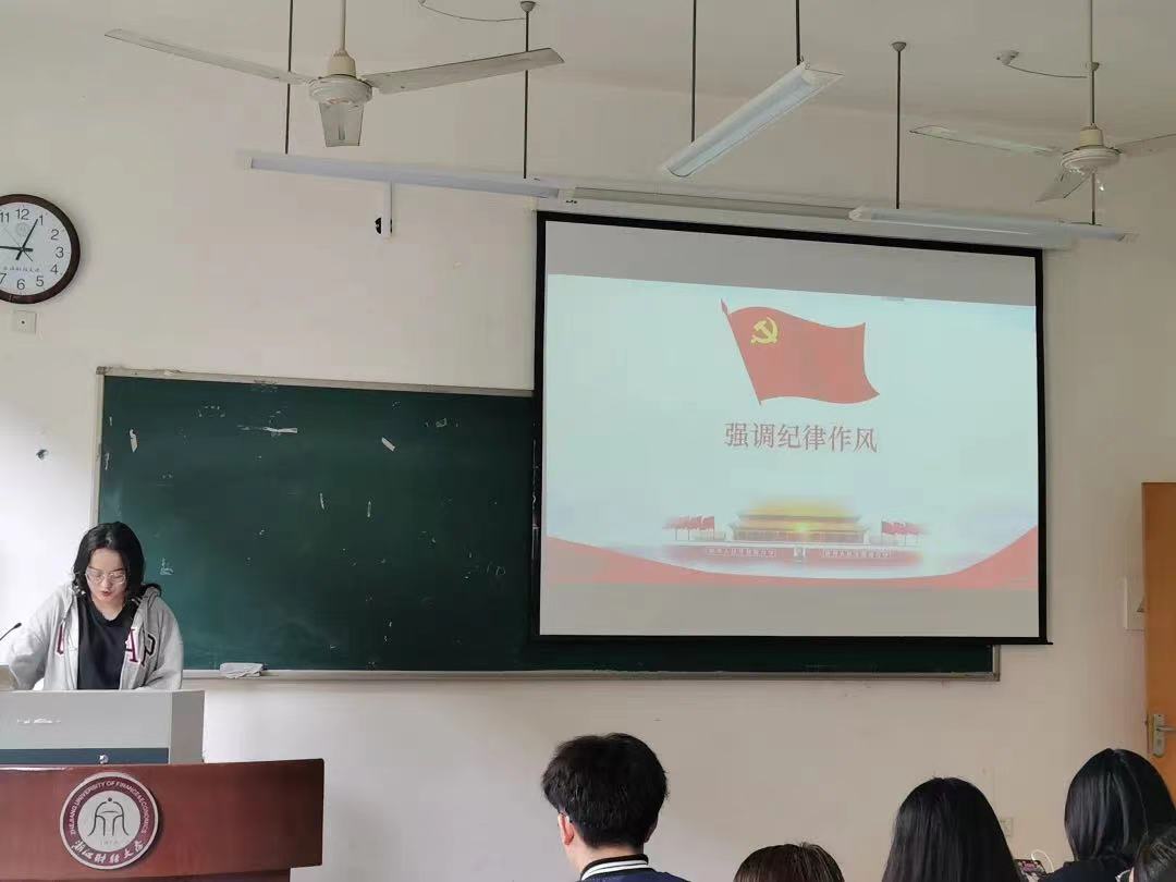 20公管四班2021年4月20日下午4:30,20级公管四班全体成员在团支书陈品妤的组织下开展了员工作风建设专题学习会。学习会分为四部分,视频学习、团支书总结概括、同学讨论分析以及同学发言。