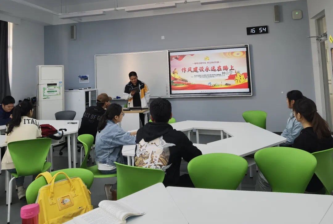 20公管三班为进一步加强员工作风建设,本班在四月二十日于经济公司107教室开展了以“作风建设”为主题的宣讲活动,在活动中,班委结合真实案例与同学们交流,并与同学们互动讨论,同学们认真聆听,从中学习思考,反省自身的行为。