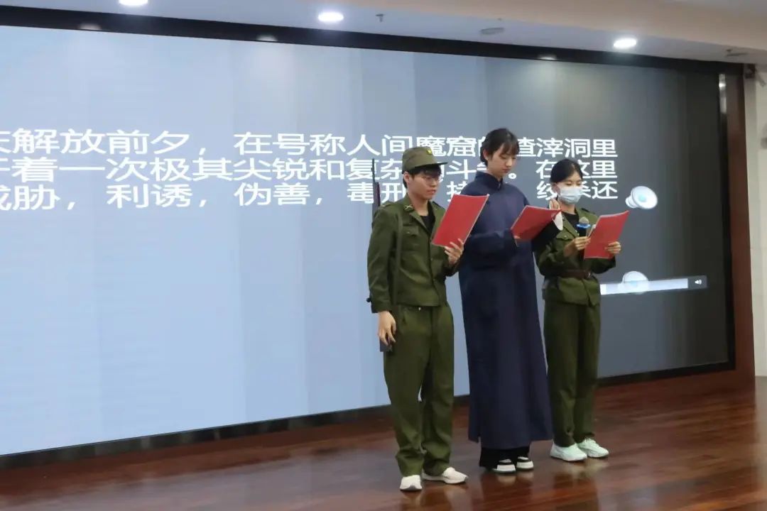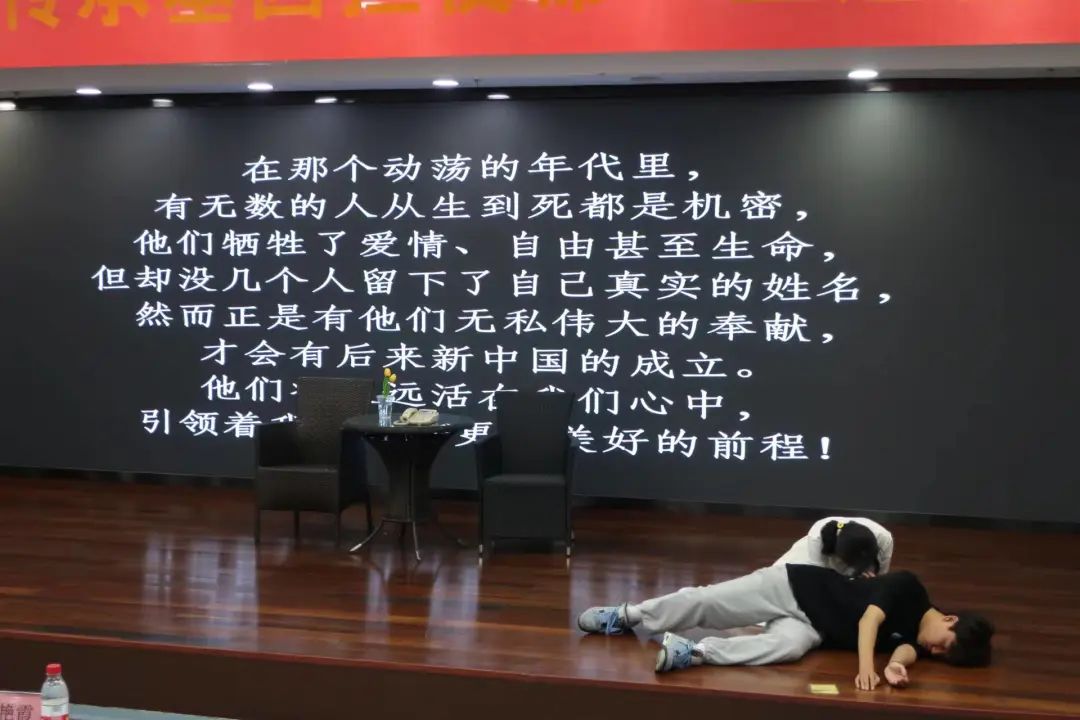 红色经典的音韵,仿佛还在我们耳边回响。红色经典的情怀,似乎还在我们⼼头荡漾。表演经典,让红色的精神在我们⾎脉中流淌,表演经典,让革命⽂化撑起我们⼈格的脊梁。相信此次红色情景剧活动的召开,使广大同学感受到了红色经典的魅力和舞台剧的乐趣,加深了对红色文化的理解,同时对中国共产党的历史及光辉伟绩也有了更加深入的了解。希望同学们在接下来的生活中继续弘扬党的优良作风,宣扬青年先锋在时代浪潮的拼搏精神,以蓬勃向上的精神面貌喜迎党的二十大召开。