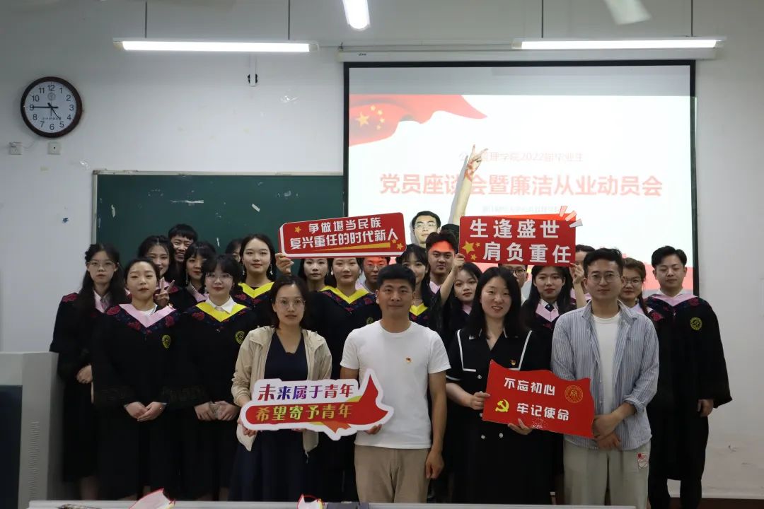 3044永利集团2022届毕业生党员座谈会暨廉洁从业动员会在全体与会人员合影留念后落下帷幕。在此,祝愿学长学姐们前程似锦,以梦为马,不负韶华!