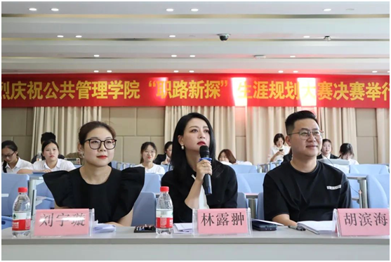 入围决赛的10支队伍依次上台围绕自我探索、职业认知、人物访谈、计划路径等方面进行汇报展示,并在展示后根据评委提问进行答辩。经评委综合打分,现场评出一等奖一名,二等奖两名,三等奖三名,优胜奖若干名。最终,来自20公管1班的刘莉团队以《天生“你”才必有用》荣获一等奖,何文莹、林燕琼等两支队伍荣获二等奖,许煜捷、丁阳斓、赵佳丽等队伍获三等奖。