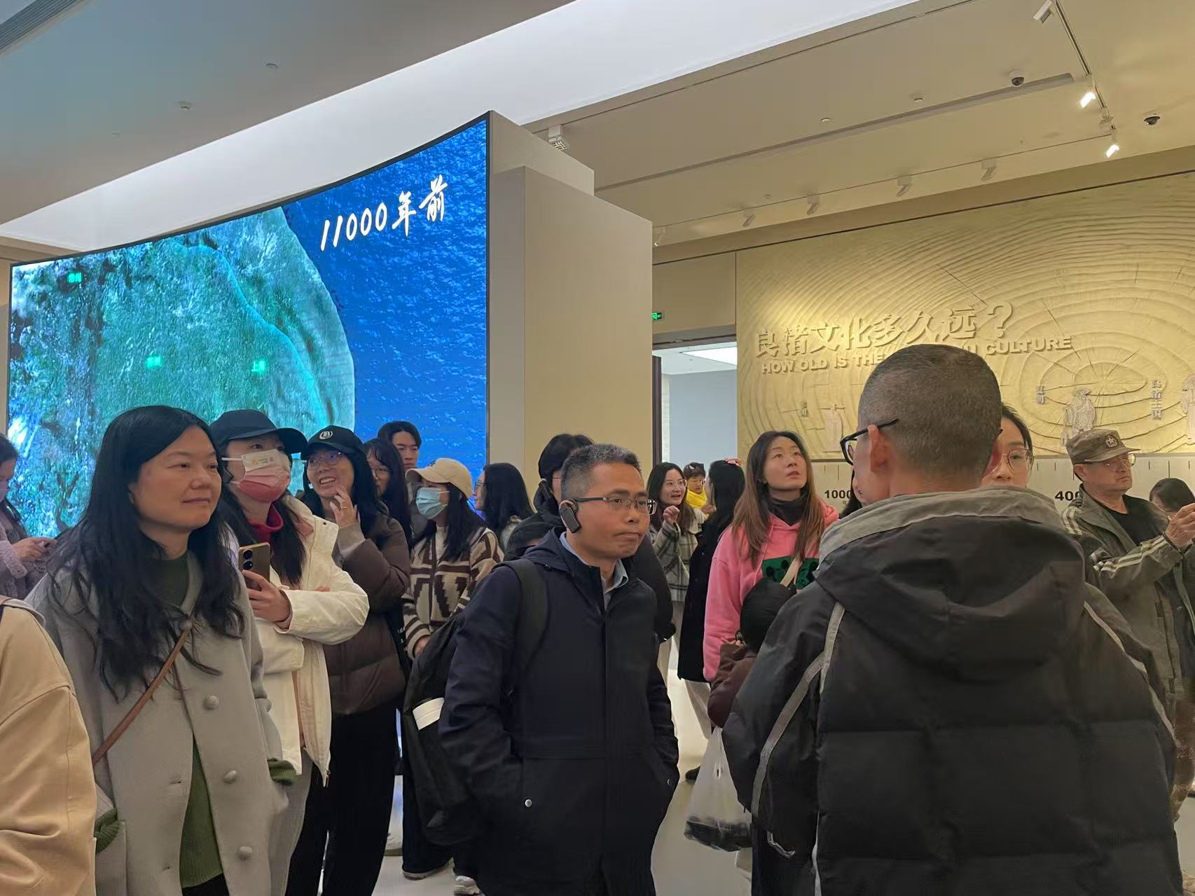 良渚博物院是展示良渚文化的重要窗口,馆内通过丰富的文物、详实的史料和现代化的展陈手段,生动再现了良渚文明的辉煌成就。在讲解员的引导下,大家依次参观了“水乡泽国”“文明圣地”“玉魂国魄”三大主题展厅,详细了解了良渚古城的考古发现、社会结构、祭祀文化以及玉器制作工艺等内容。一件件精美的玉器、一幅幅生动的场景,让大家深刻感受到良渚文明作为中华五千年文明实证的非凡意义。