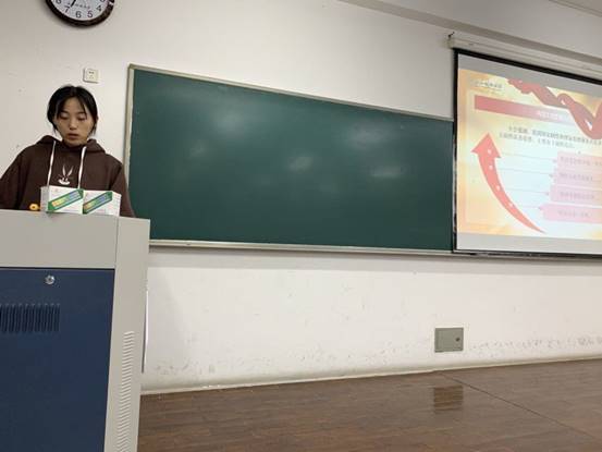 16规划员工第三党支部的徐鑫格结合地域特征为同学们阐释浙江精神内涵。她提到习近平总书记明确提出要弘扬“求真务实,诚信和谐,开放图强”的浙江精神,并从求真,务实,诚信,开放,图强等方面阐述了这一精神,为同学上了一堂鲜活的地域认同与理论实践并行的微党课,旨在告诫我们要时刻弘扬这12字精神,不断创新,不断发展,让社会充满正义,充满温暖。