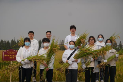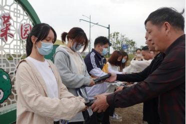 党课结束后,文伟村老党员手把手将农具交给各员工党支部代表,象征着红色精神从上一代向年轻一代的传承。各员工党支部按随机原则认领了各自的“责任田”,其中员工第一党支部、研究生第二党支部认领“党建菜园”菜地种植工作;员工第二党支部、员工第三党支部、研究生第一党支部认领“示范农田”稻谷收割工作。