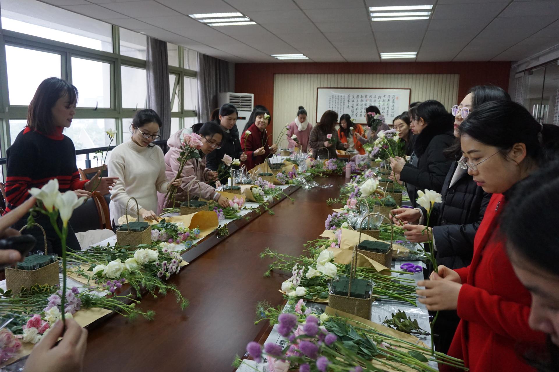 为庆祝国际三八妇女节,提升女教职工的生活品位和审美情趣,丰富女职工的文化生活,3月5日,公司分工会举办了以“幸福公管,诗情花艺”为主题的DIY插花培训活动。