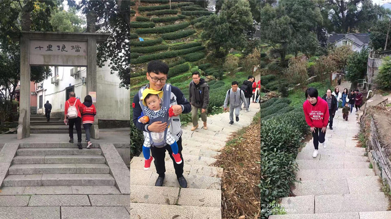 十里琅珰古道,教职工们抬级而上、登高望远,周边视野很开阔,从山腰往下看,漫山遍野的茶园,一片壮观的景色。在美景中,大家放松心情、一路欢声笑语。