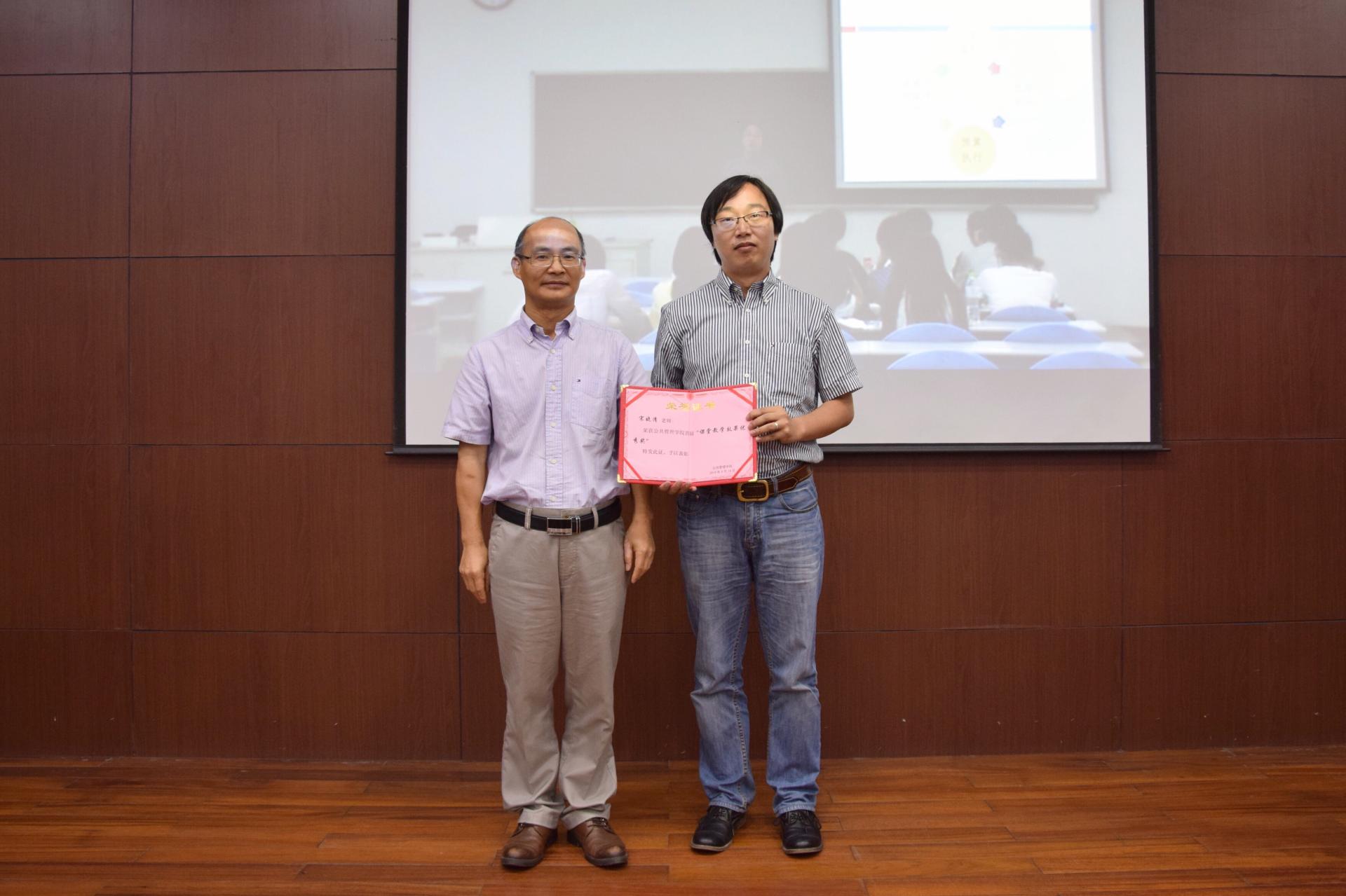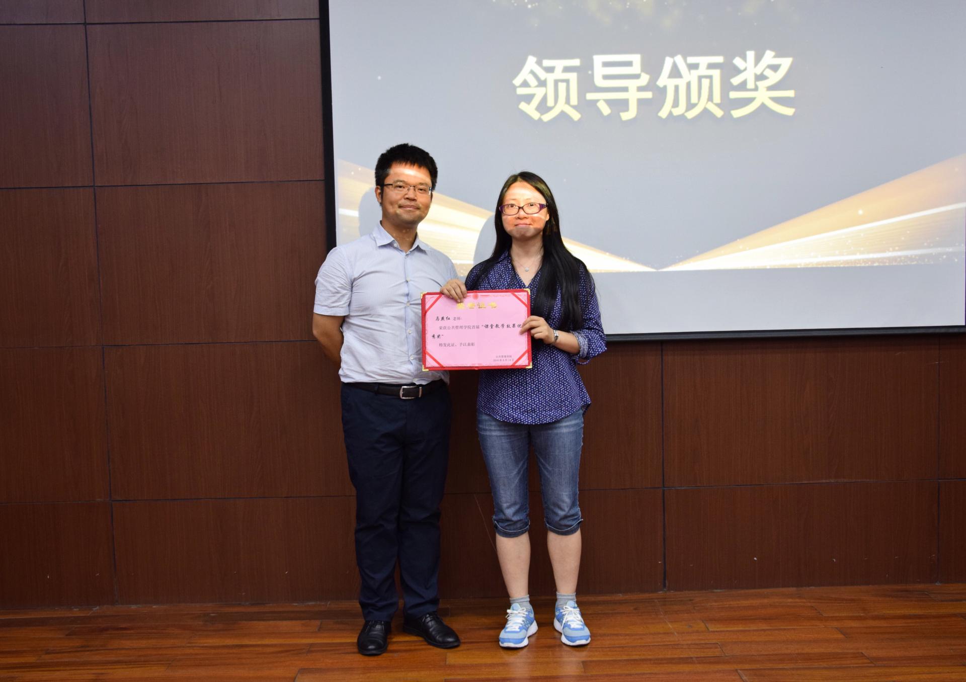 钟晓敏董事长、励如孟副董事长及其他领导为荣获首届课堂教学效果奖的老师颁奖。本次课堂教学效果奖共评出最佳奖1名、提名奖1名和优秀奖2名。优秀奖获得者为公共管理专业宋晓清老师、工程管理专业马艳红老师,提名奖由行政管理专业操世元老师夺得,最佳奖则由城乡规划专业的郭敏老师摘得。每位获奖老师发表了获奖感言,所教班级员工代表也上台发言。最佳奖获得者郭敏老师道出了每位青年教师的心声,她感谢公司举办“让师生爱上课堂”活动,让各位老师有学比赶超、挑战极限、提升自己的良好平台,并交流了自己在创新教学方法、践行教学范式改革等方面的心得体会。