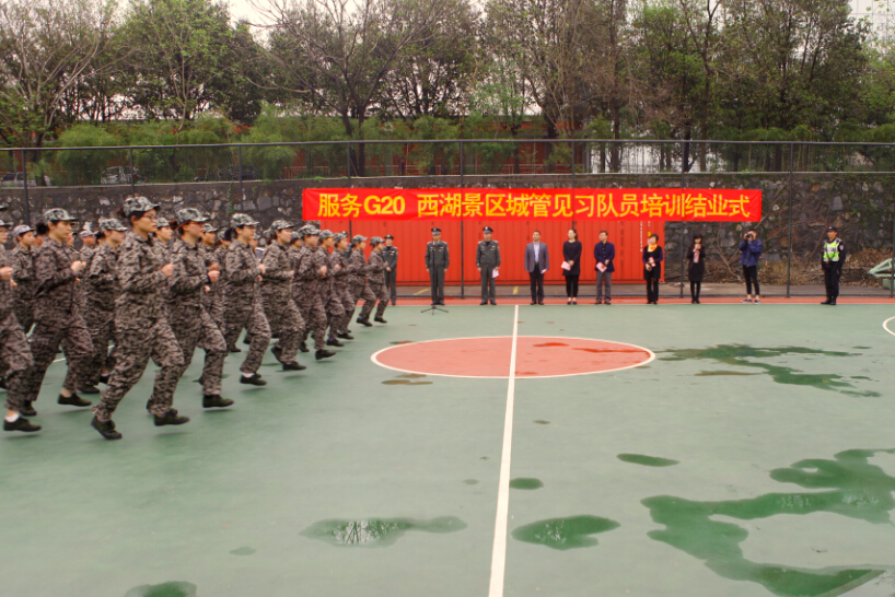 2016年4月7日上午,经过21天的艰苦训练,公司城市管理专业员工参加西湖景区执法局G20服务保障实习专项培训结业典礼在培训基地举行。西湖景区执法局局长冯刚主持结业式,西湖景区管委会党委委员、巡视员裘统、公司公司党委副书记曹桢、杭州西湖风景名胜区人社局(组织部)副调研员刘玲萍城市发展与管理系主任杨雪锋、班主任李秋香等校政双方分管领导和老师出席结业典礼。