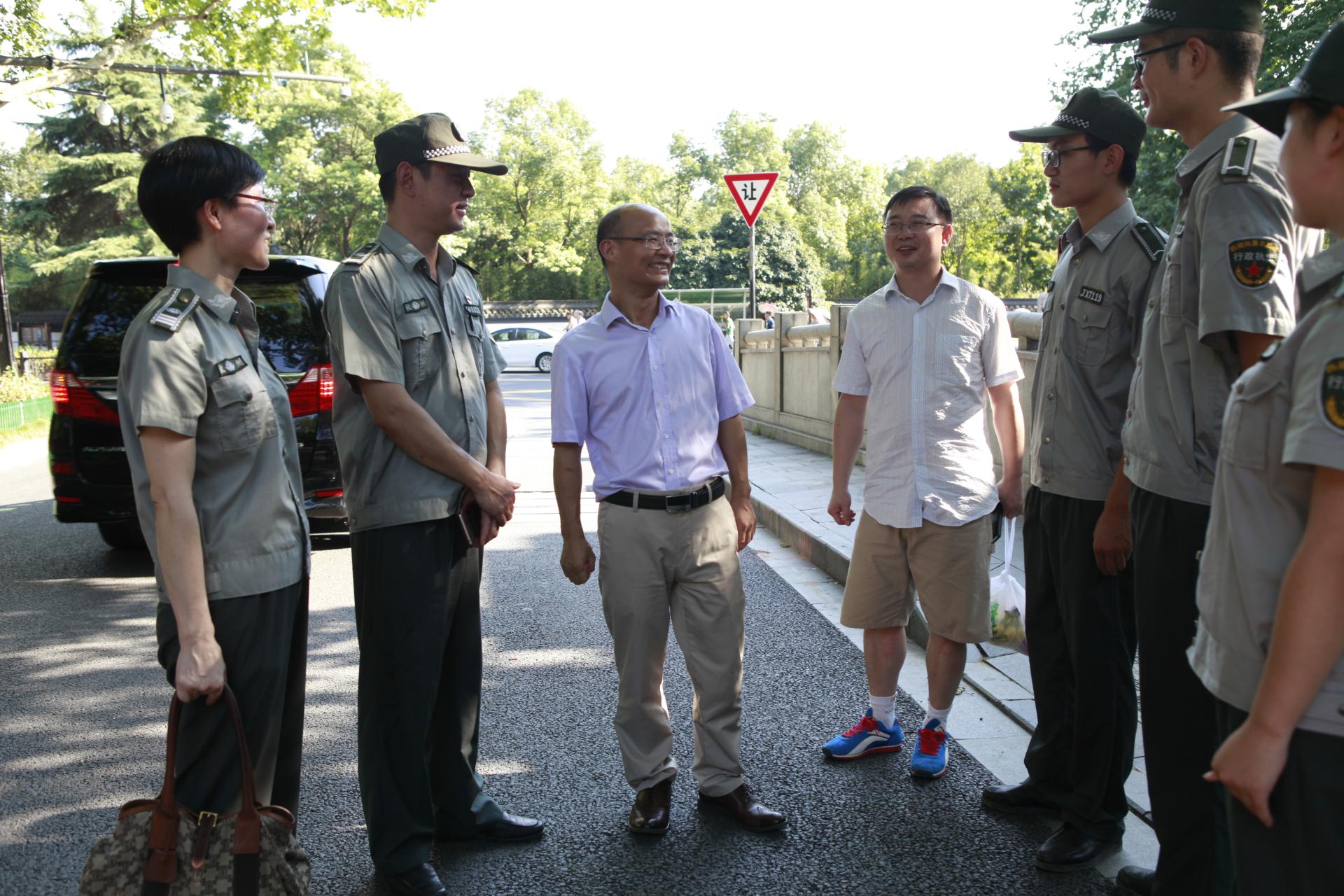 7月21日下午,郭剑鸣经理在公司城市管理系主任杨雪锋的陪同下,前往西湖景区看望慰问了参加服务G20峰会保障任务的城市管理专业实习生。