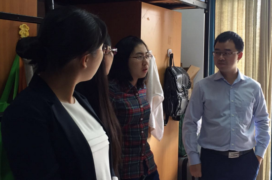 10月18日下午,工程管理系所有教师齐聚于公司楼,在16级工程管理班班长卢开以及团支书张凌薇的带领下,走访了新生所在的桃李苑1幢和15幢宿舍楼。