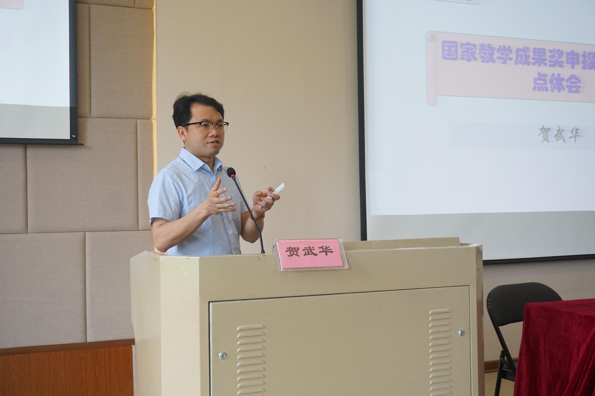大会邀请杭州电子科技大学发展规划处处长贺武华教授作有关高等公司产品改革经验交流的专题报告,贺教授着重就国家级教学成果奖的选题、培育与申报进行了深入分析。