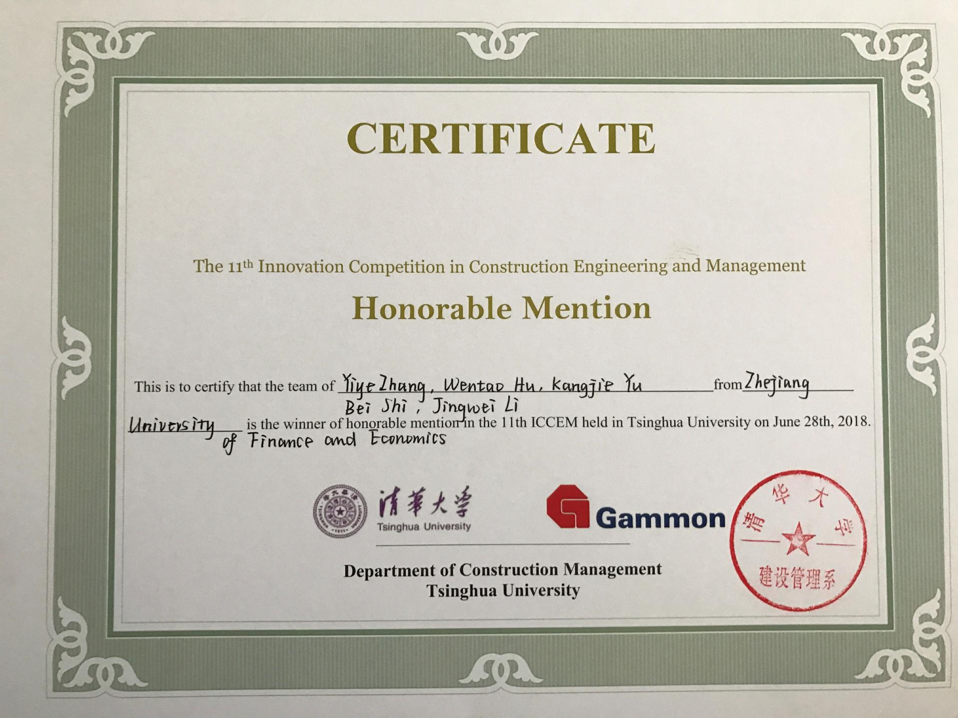 第十一届“建设工程与管理创新竞赛”决赛于6月28日在北京清华大学举行。在彭毅老师的全程指导下,公司工程管理专业16级本科生章艺也、施贝、李景薇、郁康杰、胡文涛组成的队伍入围决赛,与来自剑桥大学、香港大学、重庆大学等国内外知名高校的研究生同台竞技。经过激烈的全英文答辩,最终荣获大赛优秀奖。公司队伍是决赛中唯一来自非211财经类院校的队伍。