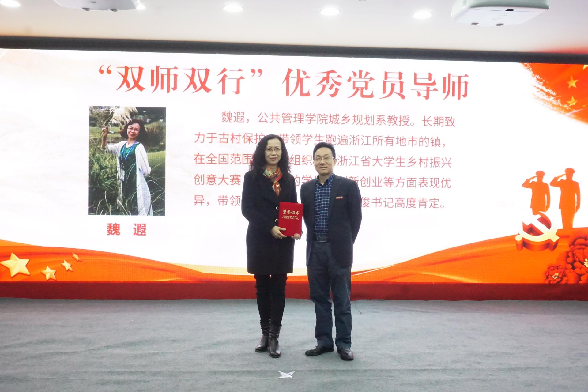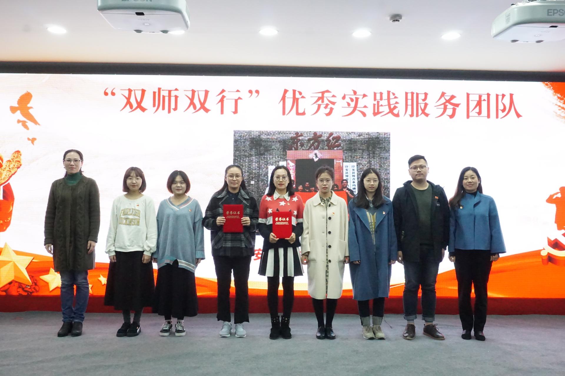 在表彰先进环节通过视频短片回顾公司“双师双行”党建育人基本情况,表彰了优秀党员导师魏遐、彭毅,优秀朋辈导师陈俊宇、胡文涛、娄云子,优秀实践服务团队“淳安支教”团队。与会领导分别为优秀个人和团队颁奖,并共同上台揭晓最新的“双师双行”实践服务基地分布图。