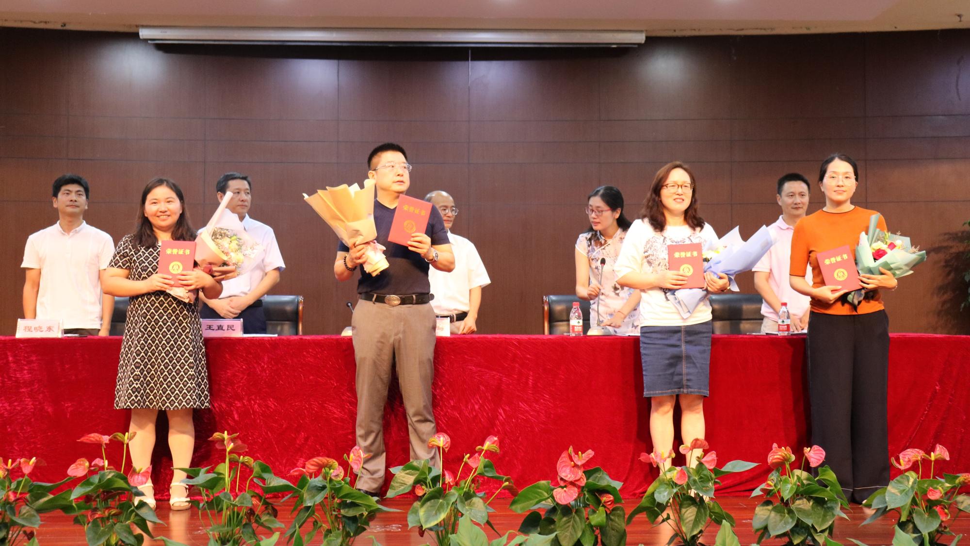在热烈的互动环节后,大会正式开始。首先对获得校2018-2019学年优秀教师和先进工作者等先进典型进行表彰。员工代表向获得表彰的叶伟巍、李玉文、潘迎春、丁立等老师鲜花。