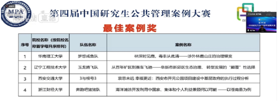 中国研究生公共管理案例大赛是代表中国公共管理教学与研究领域最顶级权威的赛事,参与面广,竞争激烈。案例大赛最重要的奖项包括最佳案例奖、代表队的各个单项奖以及优秀组织奖。
