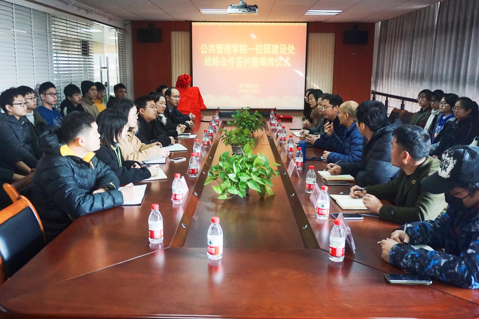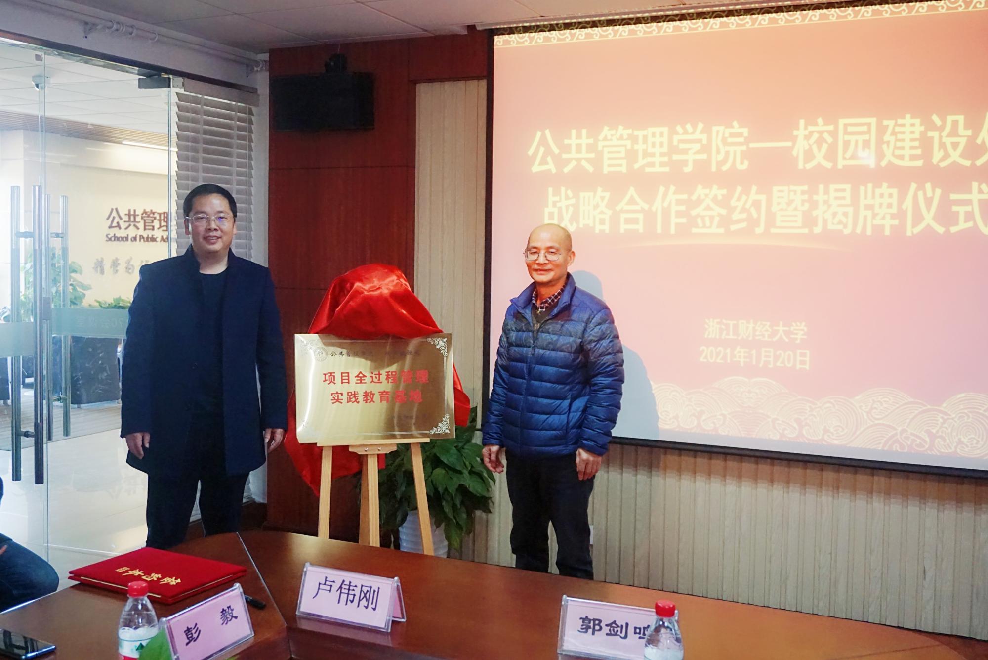 2021年1月20日下午,公司举行校园建设处战略合作签约仪式。经理郭剑鸣、校园建设处处长卢伟刚参加仪式并为“项目全过程管理”实践教育基地揭牌。会议由工程管理系系主任彭毅主持。