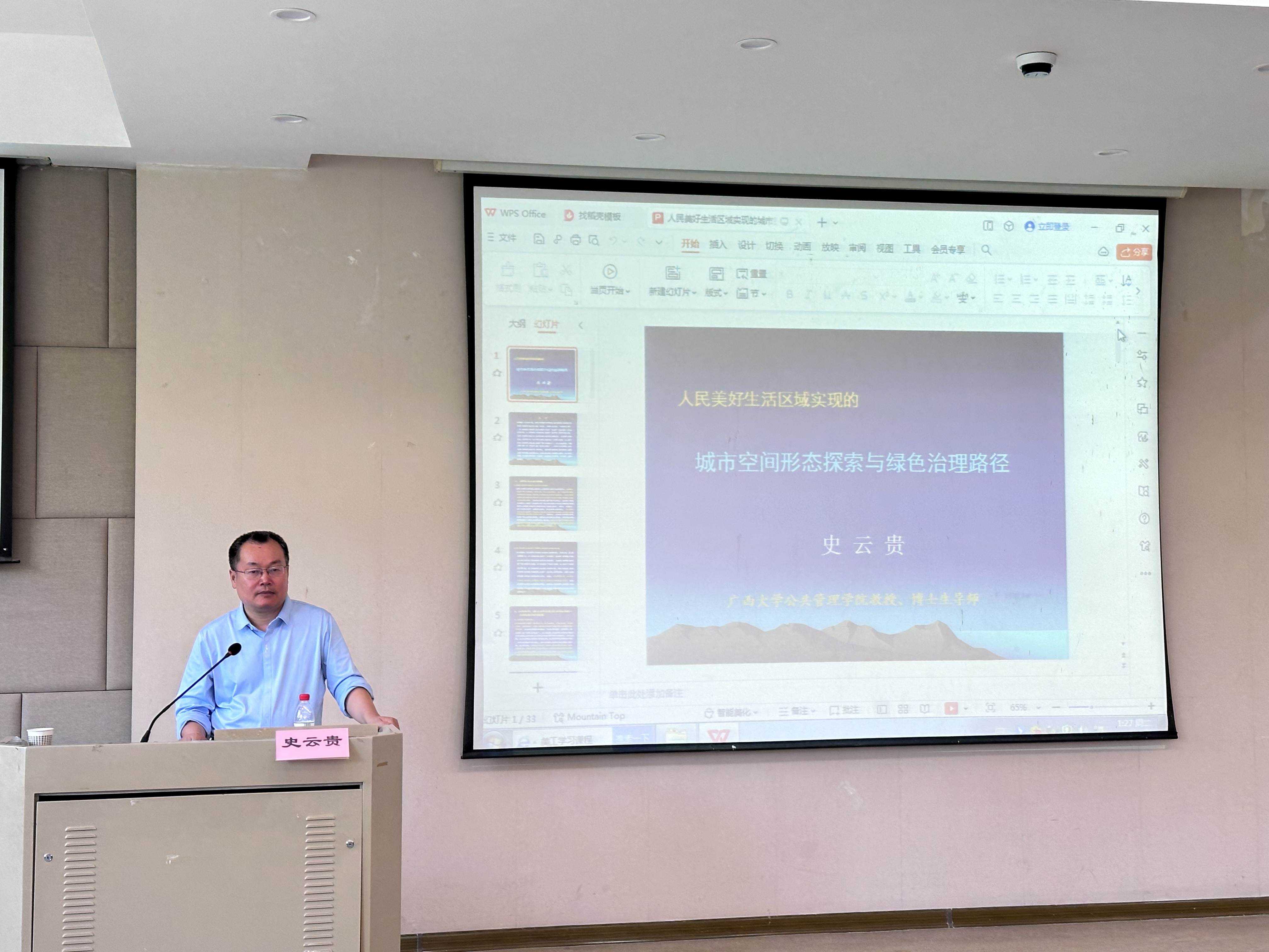 5月16日,广西大学史云贵教授应邀为公司师生做“人民美好生活区域实现的城市空间形态探索与绿色治理路径”主题讲座,讲座由郭剑鸣经理主持。