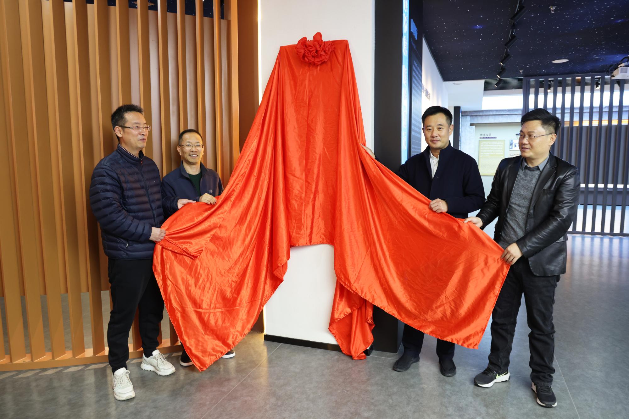揭牌仪式上,程爽、党委宣传部部长王正新与倪行军、叶进武共同为校史馆揭牌。