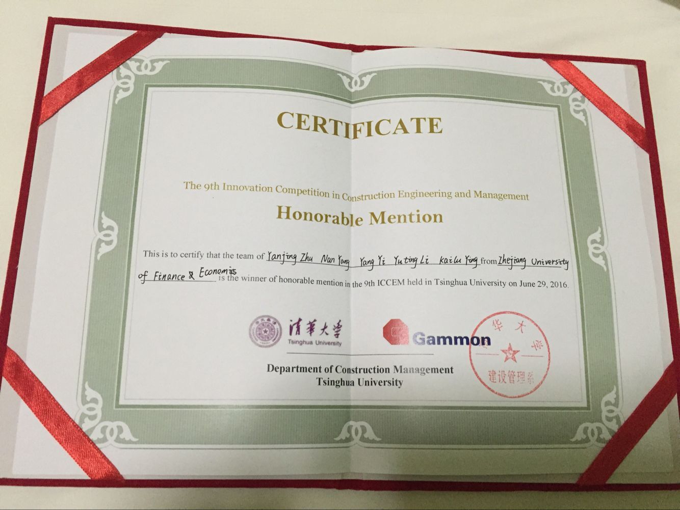 第九届“建设工程与管理创新竞赛”决赛于6月29日在北京清华大学举行。公司工程管理专业14级本科生朱艳婧、杨楠、易阳、李钰婷、应凯璐、张哲纯、童译皓、瞿玮等8人组成的两支队伍进入决赛,经过激烈的全英文答辩最终荣获大赛优秀奖。