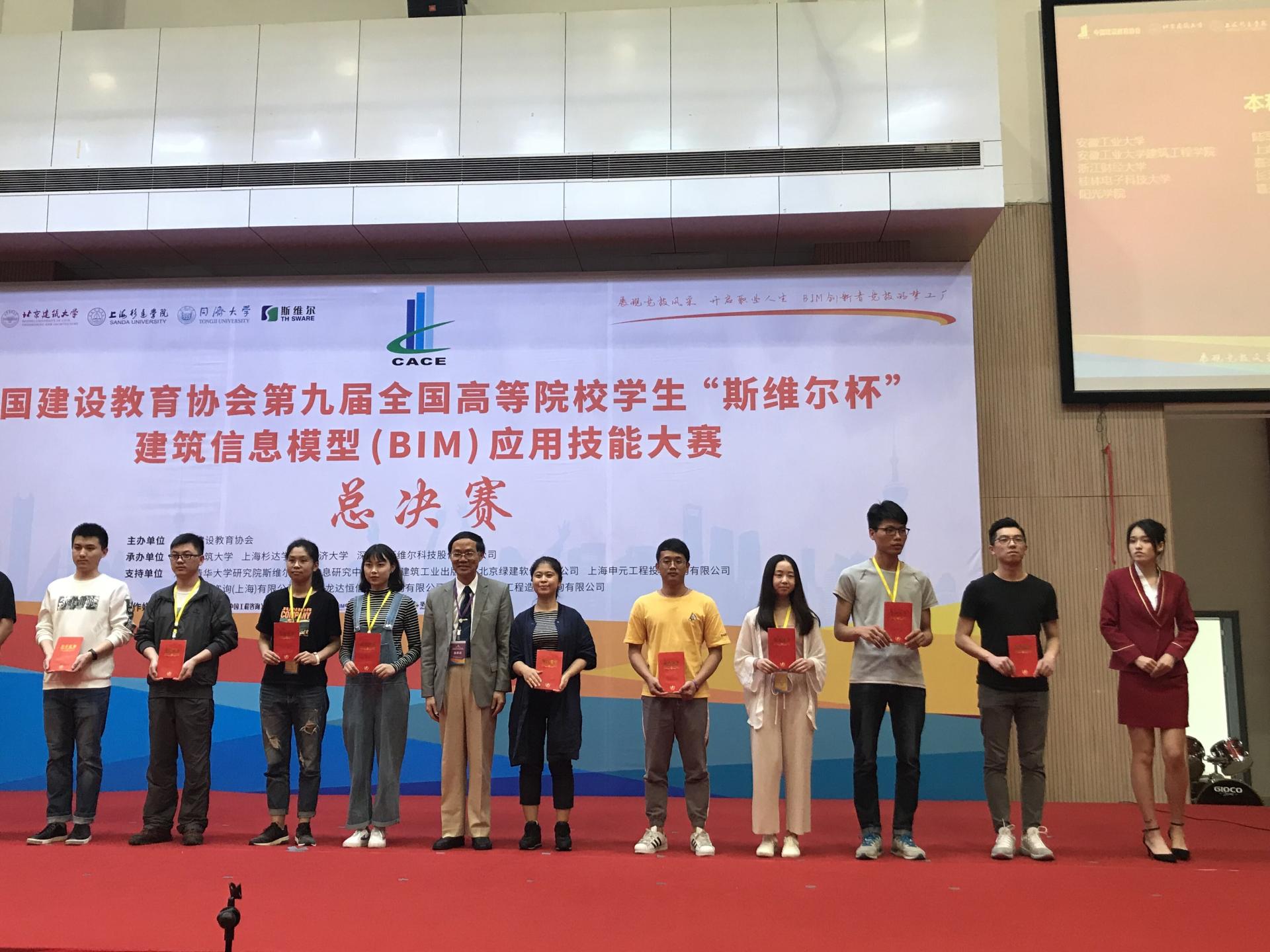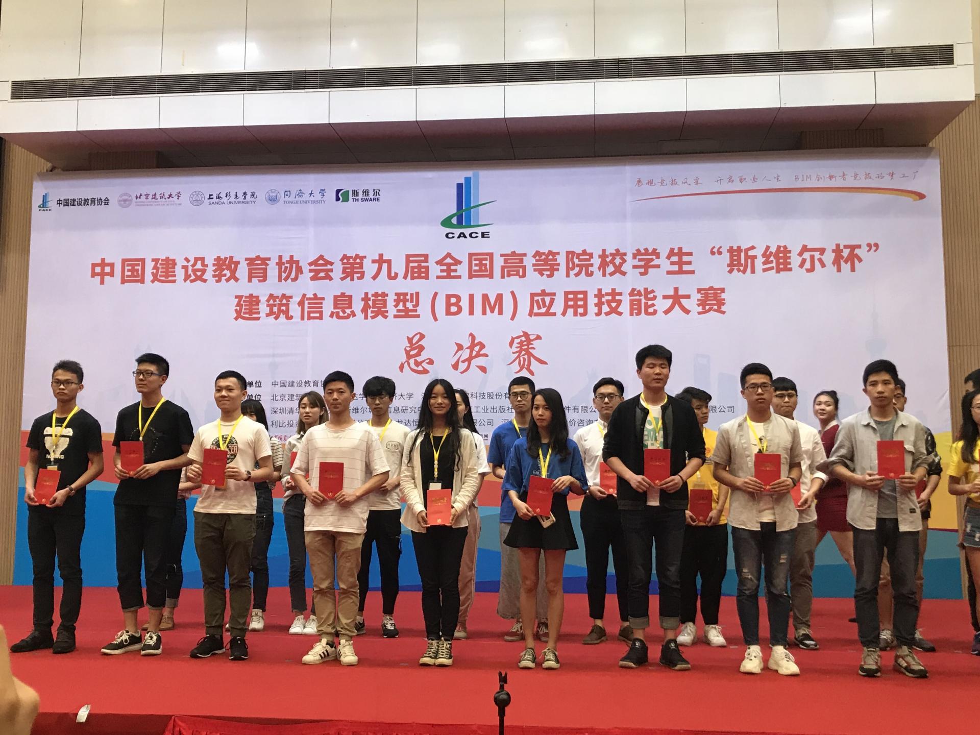 5月26日,第九届全国高等院校员工“斯维尔杯”建筑信息模型(BIM)应用技能大赛总决赛在上海举行。来自清华大学、浙江大学、重庆大学、四川大学等449所高校的453支代表队近2300人参赛。公司BIM工作坊的两支本科生队伍(队伍一:邹昊萌,李梦杰、王霞、庄珍珍、朱芸樱;队伍二:李喆、单其一、施贝、李景薇、卢杭)在工程管理系彭毅、王鸿迪老师的指导下,经过层层角逐,最终分别荣获本科组全国全能一等奖与二等奖,以及本科组工程造价专项一等奖、工程设计专项一等奖、工程管理专项一等奖。