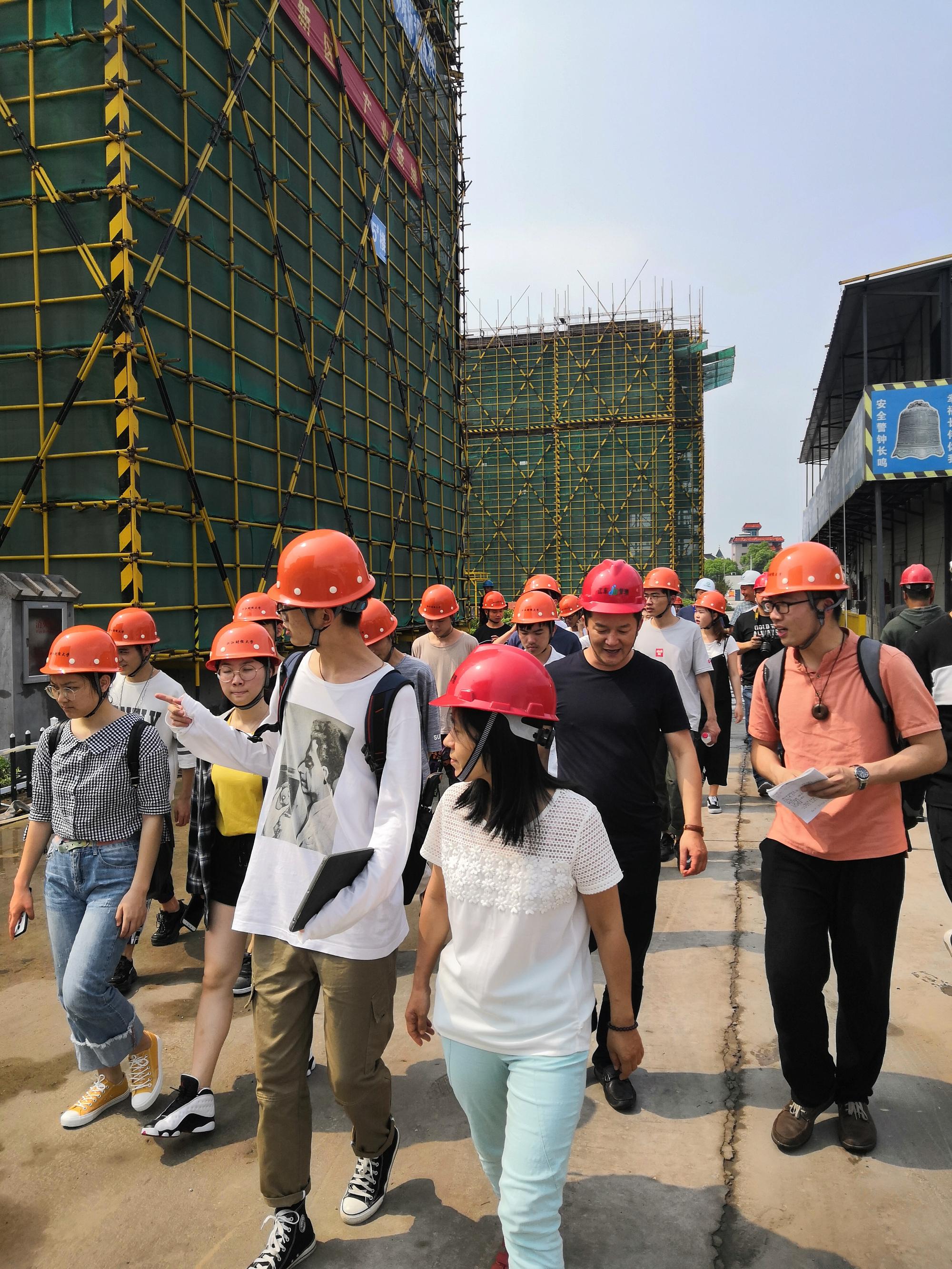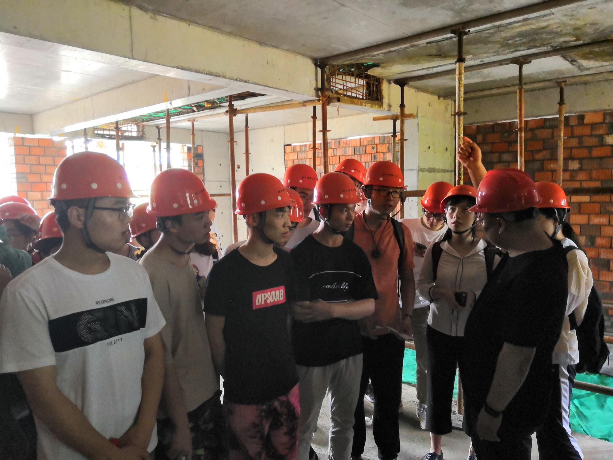随后在监理单位杭州江东建设工程项目管理有限公司项目总监和施工单位天伟建设集团有限公司项目部经理的带领下,详细参观了地下室底板钢筋绑扎、上部结构楼板混凝土浇筑、框架结构填充墙砌体施工以及标化工地管理等工作面和施工过程。相关负责人向同学们详细介绍有关工程质量、进度、安全、成本等控制要点,常见的质量通病及其防治手段等。